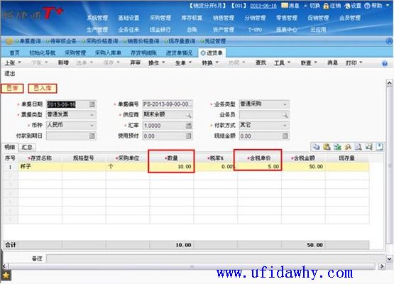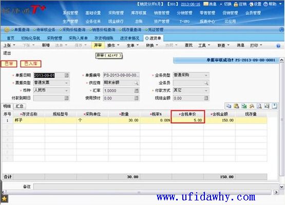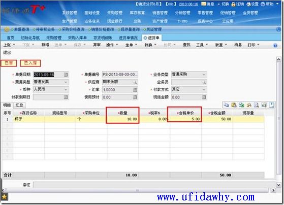 (2)9月16日填写全部发票以后,入库单上的单价不会被反填,仍然是暂估单价,但是入库单上会有“已核算”的标志