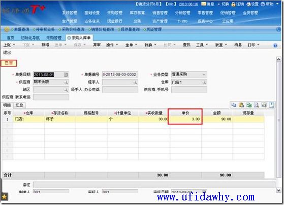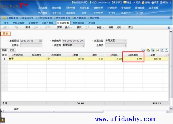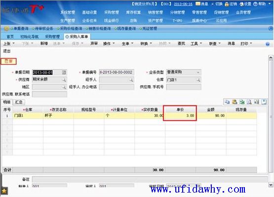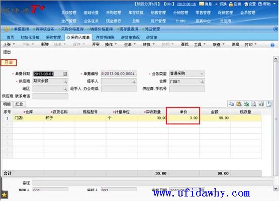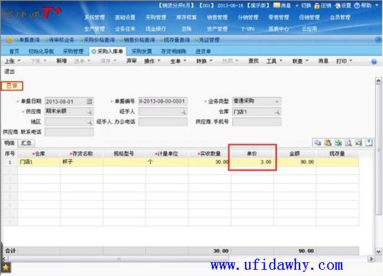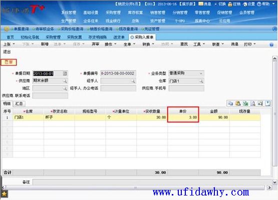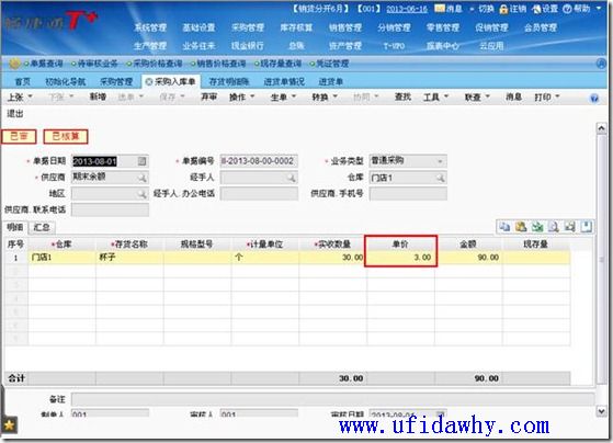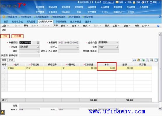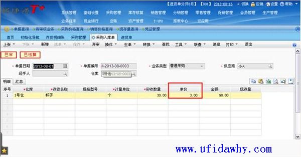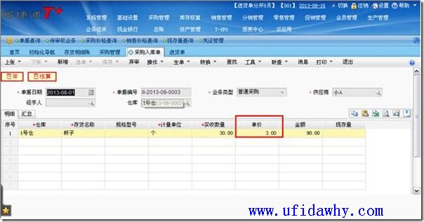 (2)9月1日填写全部发票以后,入库单上的单价不会被反填,仍然是暂估单价,但是入库单上会有“已核算”的标志