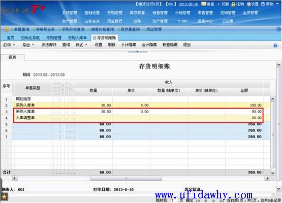 (3)查看存货明细,发票到后不会生成部分红蓝回冲单,而是针对已到发票部分生成出入库调整单以调整入库成本