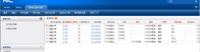 1)物料上勾选供需预定; 2)设置按单生产的计划策略及MPS、MRP运算方案; 3)销售下单后,对销售订单审批,然后通过实际独立需求查询,查询出销售需求后进行MPS运算; 4)对MPS计划订单执行MRP运算,计算原料、缝制辅料及包装辅料的采购需求;