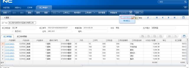 典型应用截图NC系统将派工单传递到电子工票系统,通过生产派工传递,取消派工则单据退回。
