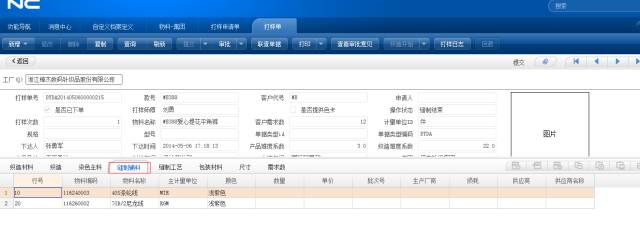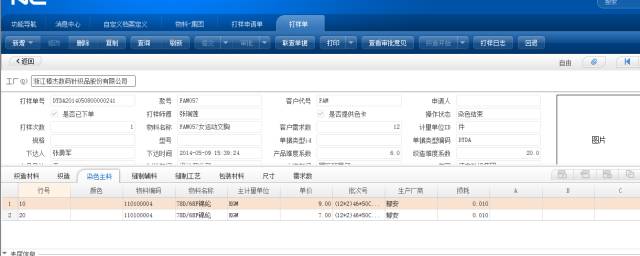 2)技术研发部门参照打样申请单生成打单,把打样相关数据填入表单;