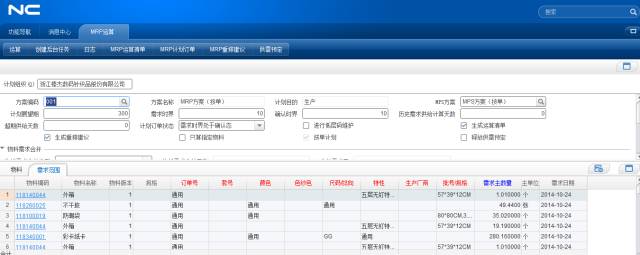 MRP运算界面