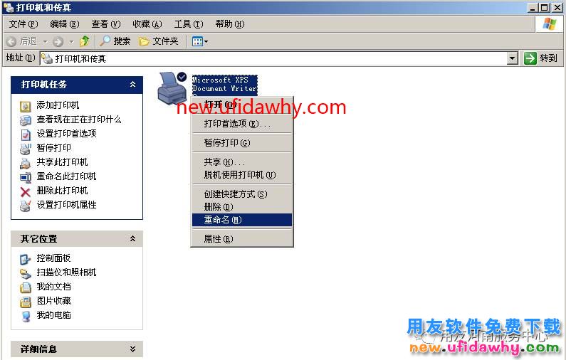 (1)依次点击电脑左下角的“开始”-“打印机和传真”,选择打印机“右击”-“重命名”,将打印机名称改为16位以内的全英文名称