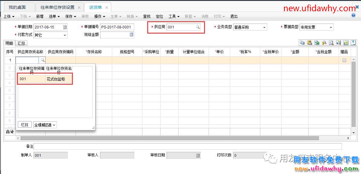 例如:某存货在我们这里叫100101台盆柜,但是在供应商那里同样的存货,编号是001,叫花式台盆柜,每次供应商开的单子都要和用友畅捷通T+软件的存货做对应很麻烦,有什么好的方法可以直接输入花式台盆柜就能对应软件的100101存货呢?