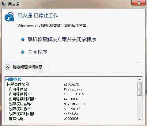 目前为止除了怀疑操作系统中毒外暂时没有找到其他原因。所以最终的办法是重装了操作系统。针对 用友T3安装在WIN7上提示用友通已停止工作 的最终解决办法是重装操作系统。