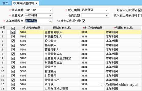 点击“总账”—“自动转账”—“期间损益结转”,选择过滤条件后确定如下图,设置本年利润科目等信息,然后点击生成凭证