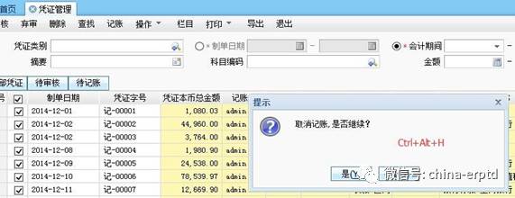 选择要取消记账的凭证,然后按下Ctrl+Alt+H,提示是否取消,点击【是】即可注:在填制凭证界面也可以按下Ctrl+Alt+H来取消记账