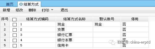 点击“基础设置”— “收付结算设置”— “结算方式”,系统预置了一些常见的结算方式,如果要增加结算方式,点击增加按钮就可