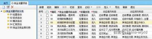 点击“基础设置”—“财务信息设置”—“现金流量项目” 如下图,系统预置了现金流项目及对应的借贷方科目,填制凭证时会自动指定现金流