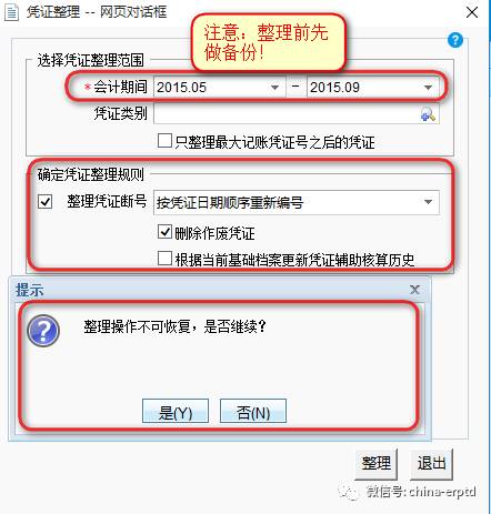 当手工编制凭证号、或修改凭证编号、删除凭证时,会出现凭证断号的情况,可以通过"凭证整理"功能对凭证编号进行整理。