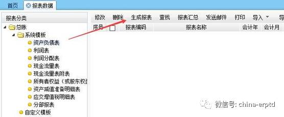 点击“T-UFO”—“报表数据”,如下图,点击【系统模板】下的“资产负债表” 然后点击“生成报表”。