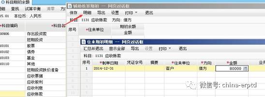 往来辅助科目的期初有两个界面:一个是辅助核算期初,一个是往来期初明细