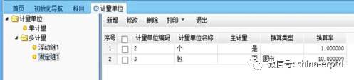 如果有科目需要数量核算,则需要在此处设置计量单位,否则就无需设置没有换算关系的计量单位称为单计量,将分组的管理方式成为多计量。多计量的管理方式下,对于组下计量单位存在换算关系的称为固定换算率,对于没有换算关系的称为浮动换算率。