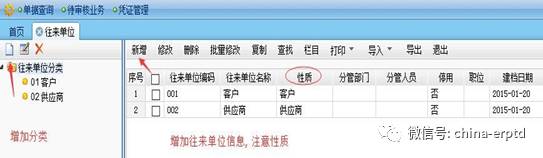 往来单位可以进行分类管理,如果建账时选择了“往来单位分类管理”,就需要先设置往来单位类别,再增加往来单位