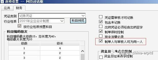 2、可以设置制单人与审核人是否为同一人,打钩表示制单人可以直接审核(T+的改进)
