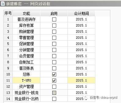 模块启用处,按加密狗上购买的产品勾选“普及账表”或“总账”“T-UFO