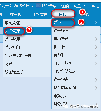 点击“总账”—“凭证”—“凭证管理”,选择过滤条件后确定